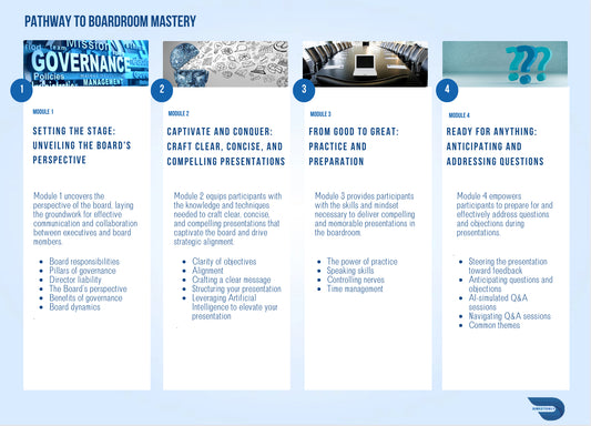 Our training programs help boards and executive teams develop the skills, knowledge, and mindset needed for success, and the confidence to succeed in the AI era